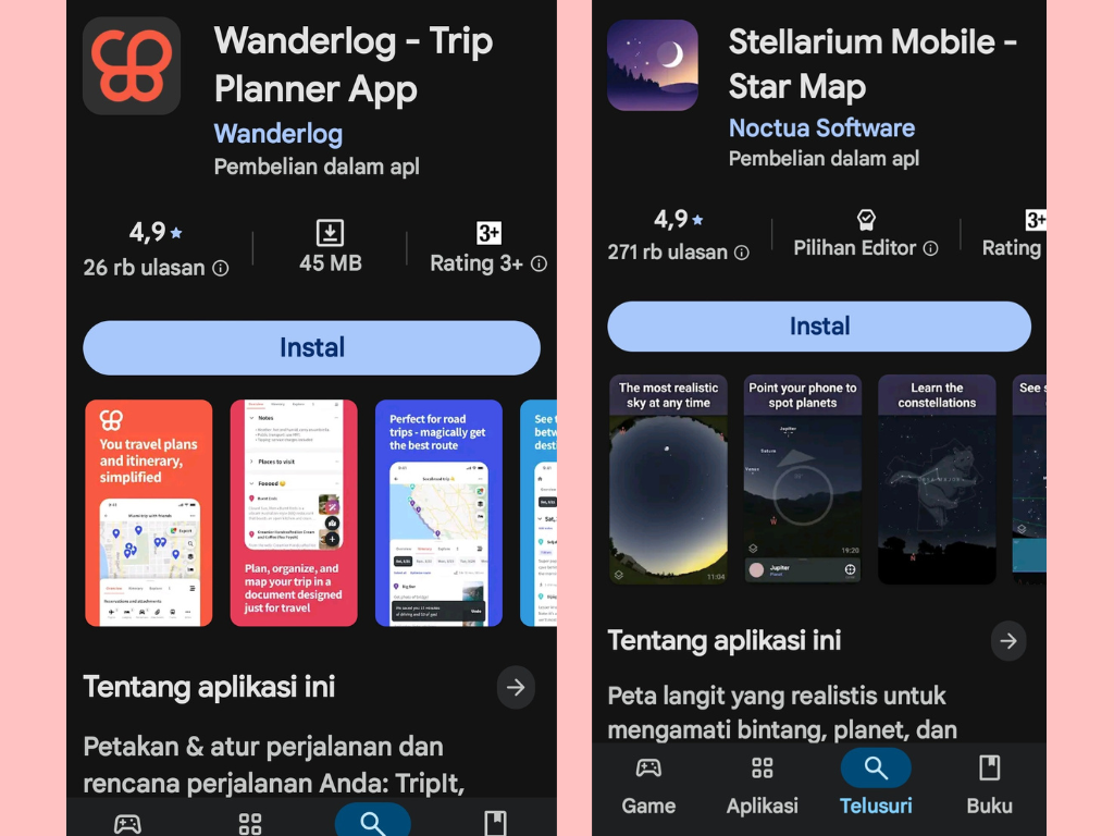 Aplikasi Stellarium ini cocok banget dipakai saat kamu pergi dan menghabiskan waktu malam di area terbuka. Misalnya saja saat kamu pergi kemping. Aplikasi Stellarium ada di IOS maupun play store. Aplikasi planetarium virtual cocok banget menemani perjalanan travelling kamu di alam terbuka.
