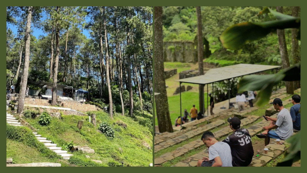 Tempat pengunjung cafe duduk dan menikmati minuman dan makanan itu letaknya persis di sebelah lokasi Stasiun Radio Malabar. Tepatnya di sisi bukit sebelah kanan dari pintu masuk. Kalau saya duduk di kursi-kursi cafe tersebut sepertinya enak banget, karena bisa langsung melihat pemandangan Stasiun Radio Malabar dari atas. Saya pun membuka instagramnya dan memang enak banget posisinya karena mendapatkan spot pemandangan kereen.