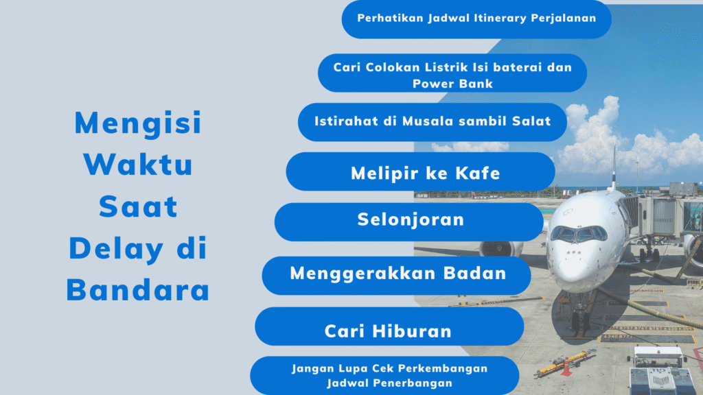 Beberapa kegiatan yang bisa kamu lakukan untuk mengisi waktu saat delay di bandara, diantaranya yaitu:
