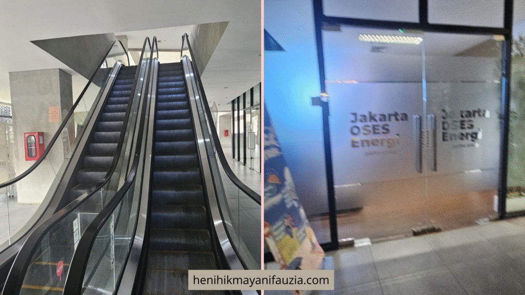 Naah, eskalator yang kami temui da tulisannya DISPUSIP. Tepat di hadapan eskalator ada kantor jakarta OSES Energi. Oh ternyata setelah saya gugling di Internet , lantai III ini namanya Gedung Ali Sadikin Lantai III Taman Ismail Marzuki (TIM).