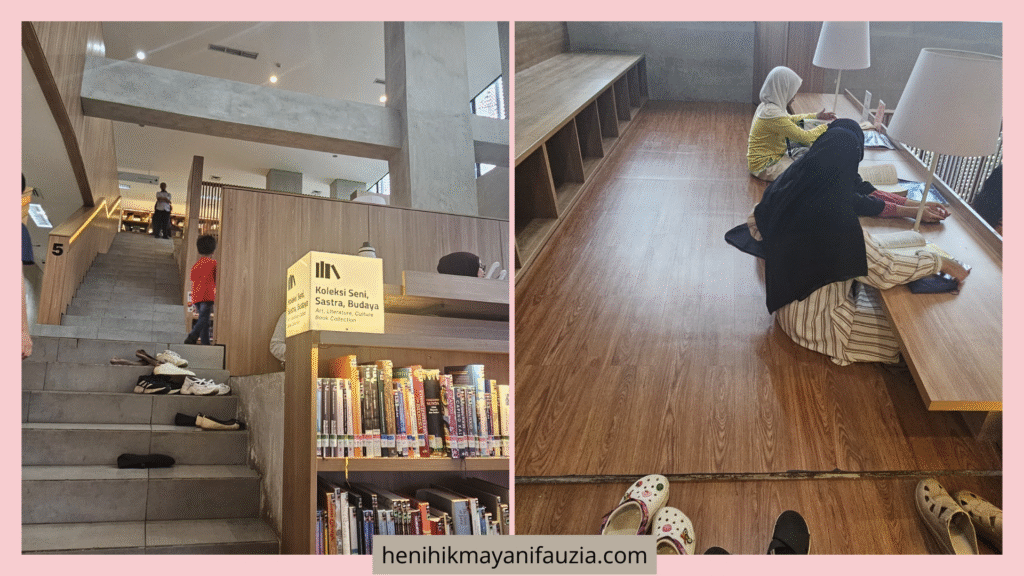 Ada banyak ruangan-ruangan juga bagi pengunjung. Seperti ruang membaca hening, ruang diskusi, ruang podcast dan masih banyak ruang lainnya.