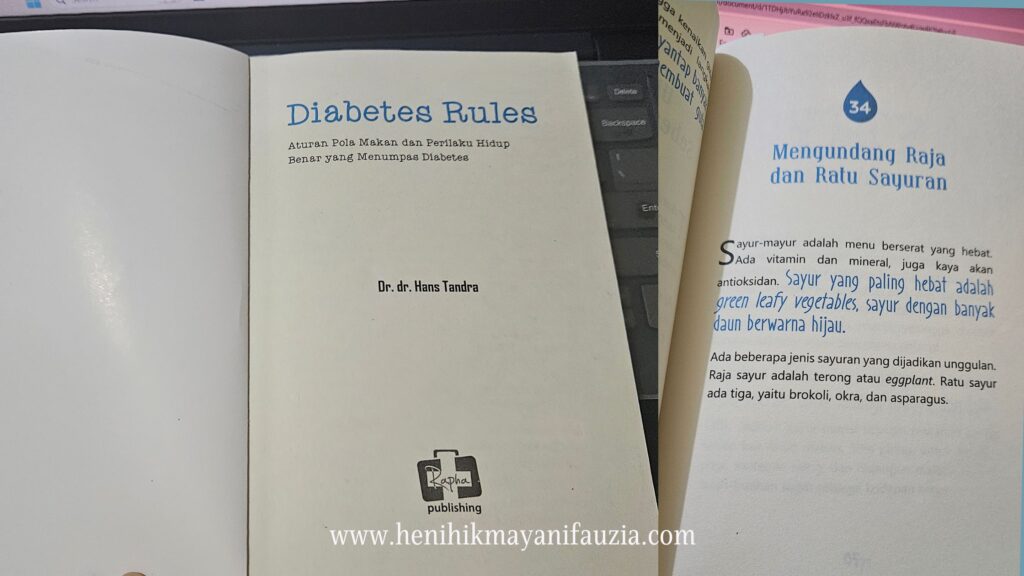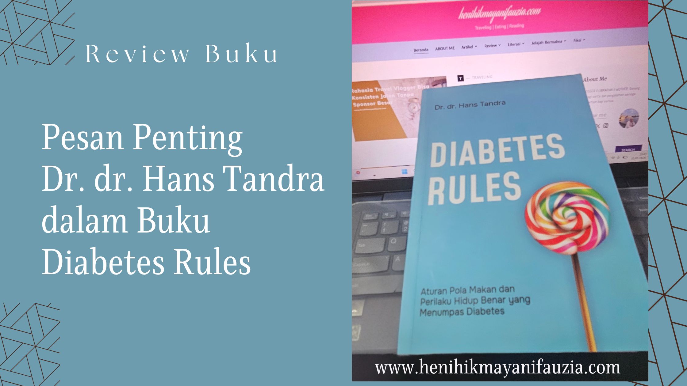 Pekan ini saya menuntaskan satu buku terbaru karangan Dr.dr. Hans Tandra yang berjudul Diabetes Rules. Buku Diabetes Rules ini menurut saya bukan hanya untuk orang yang terkena diabetes tapi lebih umum lagi untuk semua orang agar terhindar dari penyakit diabetes. Saya pertama kali melihat dokter Hans ini di sebuah podcast dan akhirnya jadi keterusan menonton setiap podcatsnya yang tema-temanya selalu menarik.