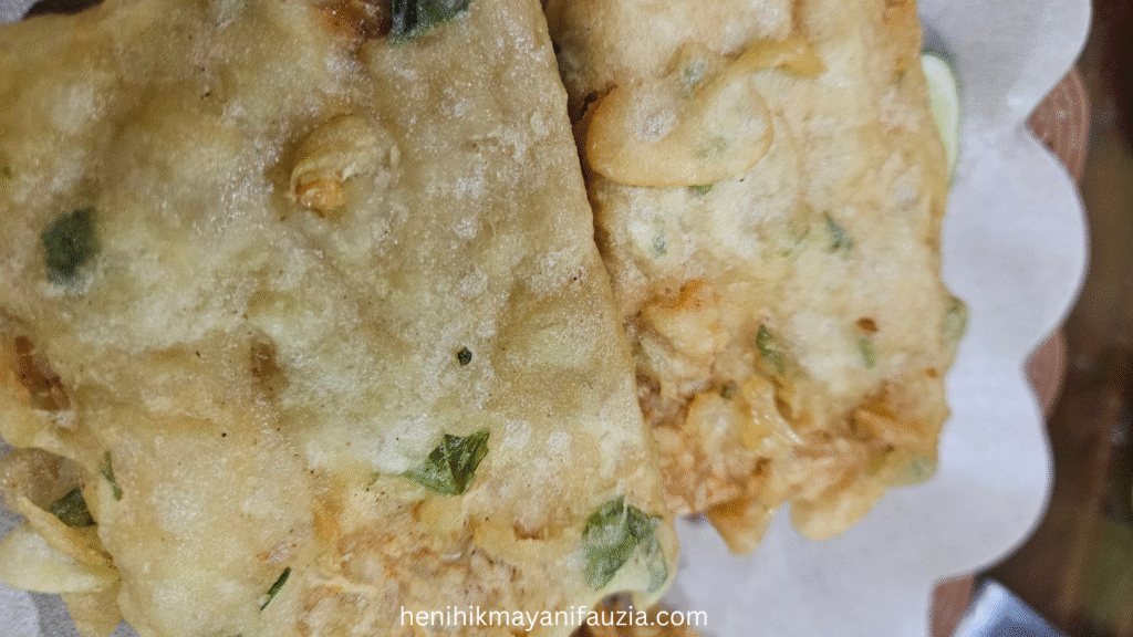 Selain soto saya makan kerupuk juga. Yaa gimana sih yaa kalau makan soto gak pake kerupuk kalau kata orang sunda mah itu namanya teu kaci hehe alis gak sohih. Gorengan yang kita pesan adalah sosis solo dan tempe mendoan. Baik sosis dan mendoan semuanya digoreng dadakan jadi saya menikmatinya panas-panas. Enaak banget dimakan sama soto.