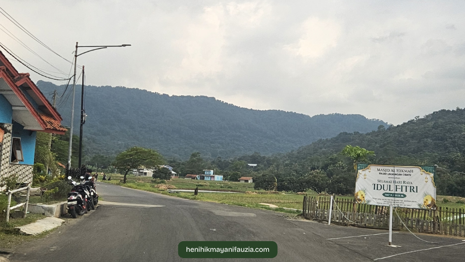 Jalannya tuh sempit yaa, tidak seperti jalan raya utama tapi pemandangannya indah. Dari jalan ini Gunung Panten sudah terlihat dengan puncak bukit yang terlihat jelas karena sudah menjadi tanah lapang saja.